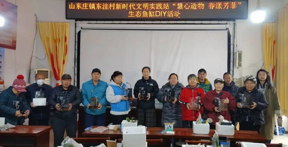看着亲手打造的鱼缸,大家成就感满满,纷纷表示这样的活动既锻炼了动手能力,又在忙碌的生活中找到了一份亲近自然的宁静与乐趣。此次活动不仅丰富了镇域群众的精神文化生活,也增进了邻里间的交流与互动。下一步,山东庄镇将继续依托新时代文明实践阵地,开展形式多样、内容丰富的文明实践活动,持续提升镇域群众的幸福感与获得感。