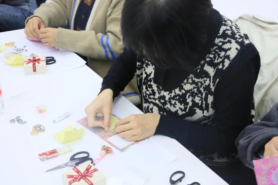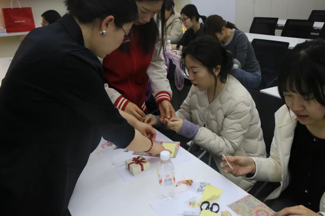 手工体验环节,大家齐聚体验区,参与了趣味十足的“马上暴富”国风包挂制作。在专业老师的细致讲解和指导下,大家手持织锦布料,认真进行设计搭配、包裹底胚、组装粘贴,再精心搭配流苏、装饰挂牌,一步步将普通的材料打造成独一无二的国风包挂。制作过程中,大家相互交流技巧、分享心得,现场氛围轻松愉悦,在一针一线的手作时光里,感受传统国风美学的独特韵味,体验动手创作的满满成就感。