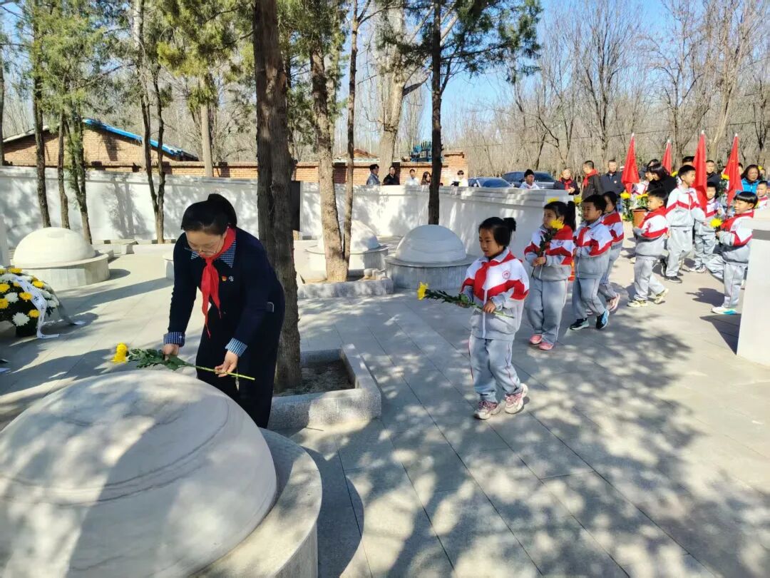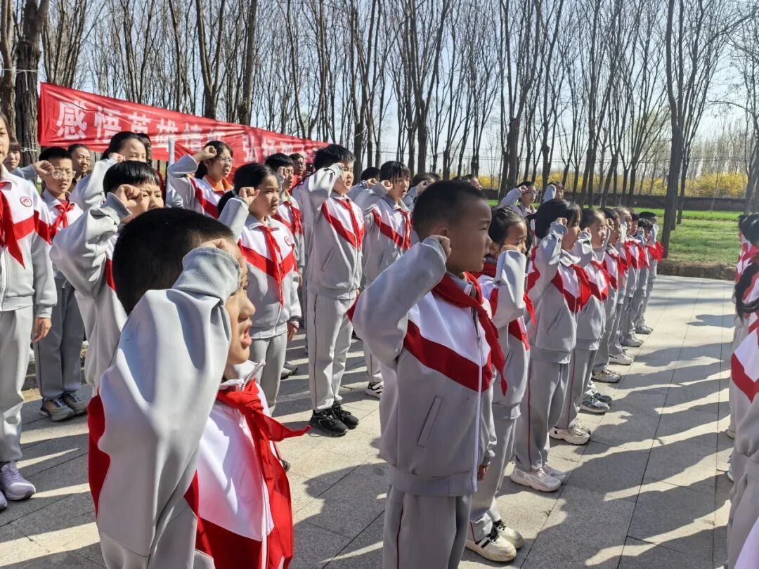 又是一年清明至,缅怀英烈寄哀思。日前,门楼中心小学联合东高村镇退役军人服务站、镇团委、南张岱村,共同开展“赓续红色血脉,传承英烈精神”绿谷红娃祭英烈清明祭扫暨新队员入队仪式。进一步传承红色基因,厚植爱国情怀,引导少先队员铭记历史、致敬英雄。